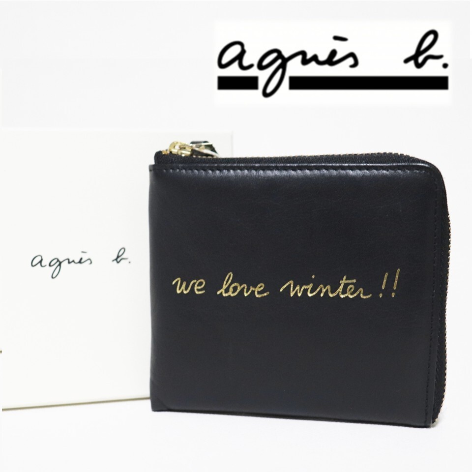 - 《agnes b. アニエスベー》箱付新品 手描きメッセージ入り スタイリッシュなデザイン L字ファスナー式財布 ウォレット S1631
