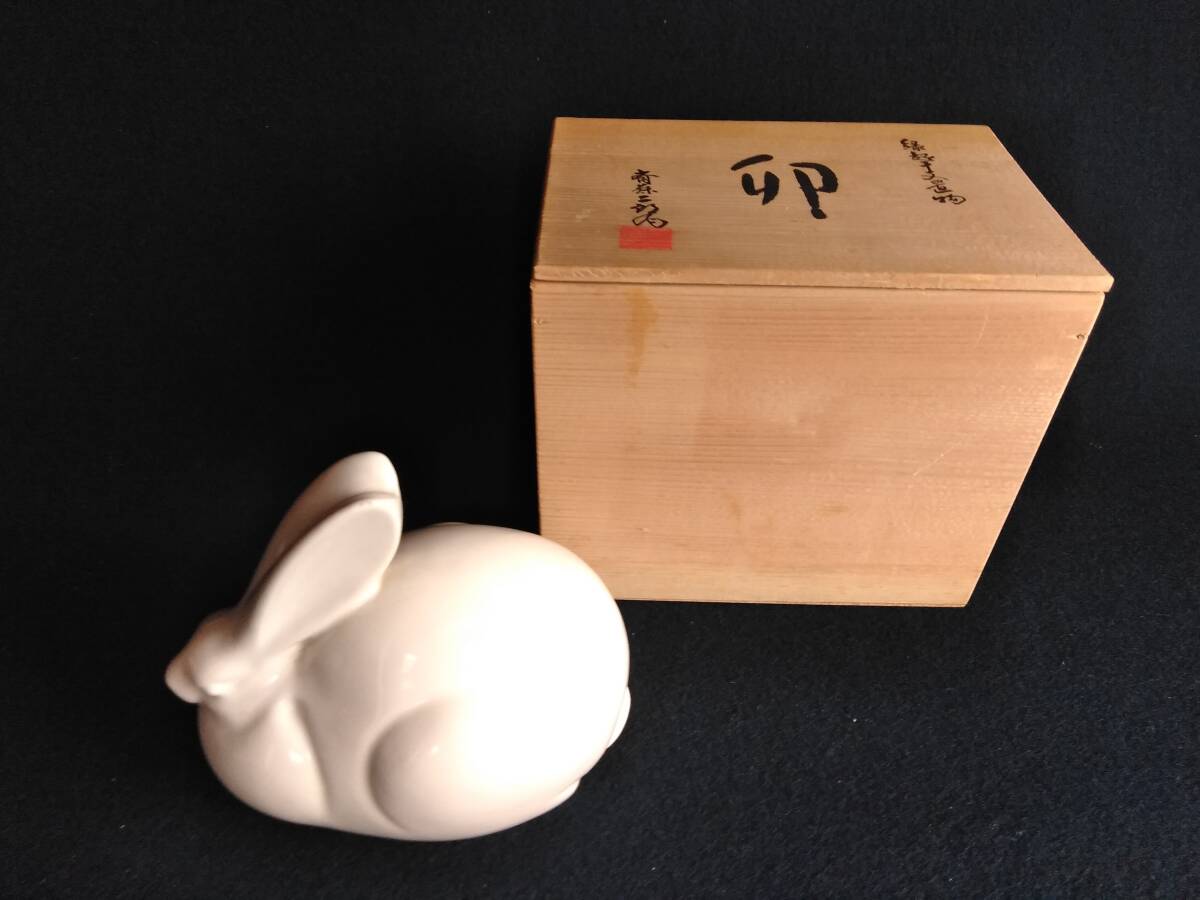 - 斉藤二郎作 うさぎ ・兔 ・卯 縁起干支置物物 木箱付き(A26)