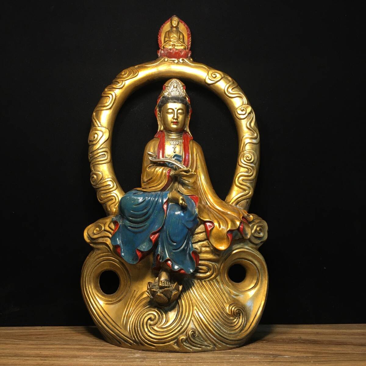 - 友人館蔵 古銅彫 彩絵観音 仏教古美術 仏教美品 供養仏像 文案置物 珍蔵品 極細工 古賞物 古美味 東洋彫刻 時代物 骨董 中国古美術