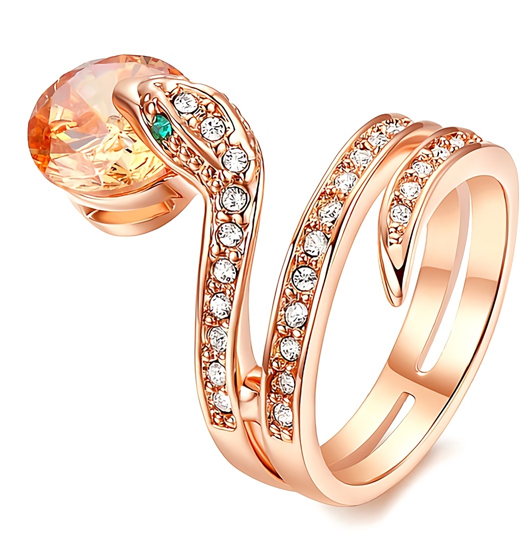 > 新品★送料無料★幸運の蛇 黄金シトリン エメラルド瞳ダイヤモンド K18PGFゴールドリング誕生日プレゼント旅行春行楽夏ギフト国内発送