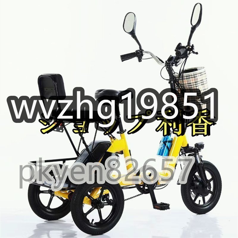 - 大人の折りたたみ電動三輪車電源アシスト三輪車 ペダル三輪車 14インチ 48V 10A リチウム バッテリー 三輪車 電動自転車 黄色