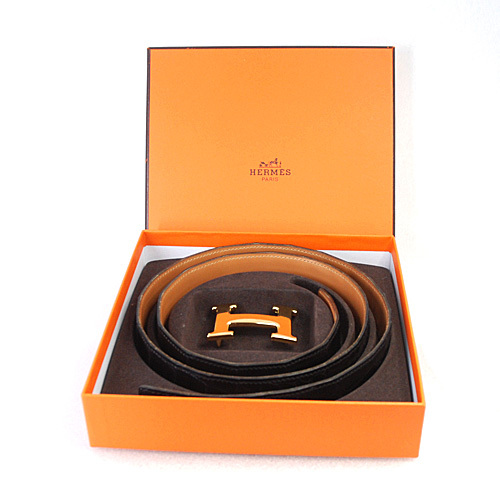 - エルメス メンズ コンスタンス アリゲーター ベルト/ブラック×キャメル ゴールド金具 100サイズ 最長102cm程 □A刻 1997年製(16066)