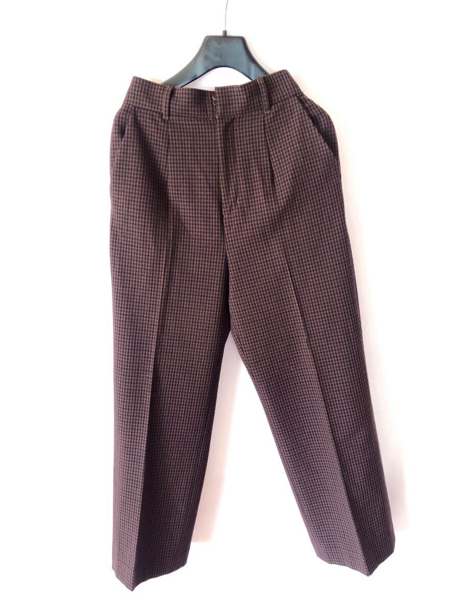 > 美品QHIPSシップスウエストゴムスラックスパンツボトムスSブラウンネイビーチェック♪ポリエステル65%レーヨン31%ポリウレタン3%(Y)