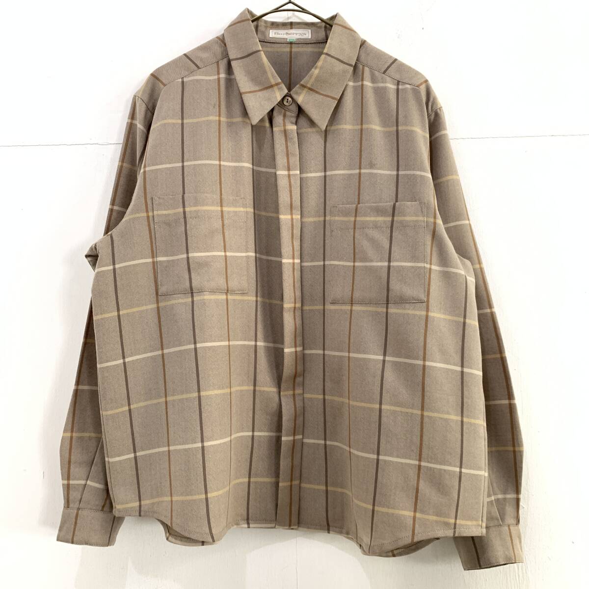 - ☆Burberrys オールドバーバリー Vintage 毛100% チェック柄 長袖シャツ ブラウス 比翼 グレージュ系 9R【レターパックプラス郵送可】C