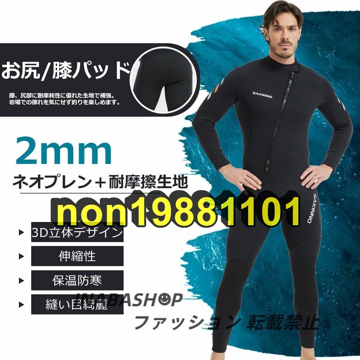 - ウェットスーツ メンズ 2mm フルスーツ スプリング 前開き 夏 マリンスポーツ ウォータースポーツ ダイビング サーフィン 裏ジャージ S-3XL