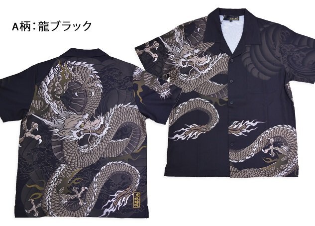 - 粋 極彩シャツ◆絡繰魂 A柄 XXLサイズ 252855 和柄 和風 アロハ ハワイアン 鯨 クジラ 龍 竜 ドラゴン からくり