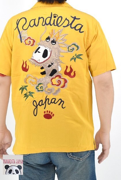 > パンドラゴン総刺繍半袖シャツ◆PANDIESTA JAPAN マスタード XXLサイズ 585202 パンディエスタジャパン パンダ スカシャツ
