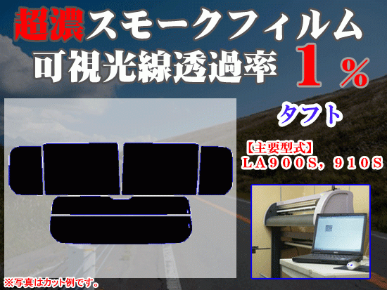 - ダイハツ タフト LA900S ストロングスモーク 透過率1% 超濃黒ウィンドウフィルム カット済みカーフィルム