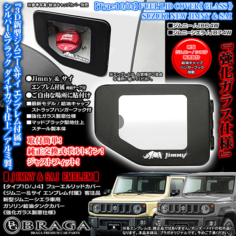 > JB74W 新型シエラ 2024型/タイプ10/J4/ジムニー・サイ エンブレム付属/客注品/給油口 フューエル リッドカバー/強化ガラス/艶消黒/ブラガ