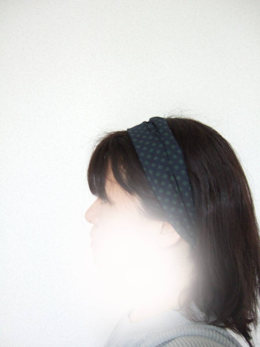 - ★即決★ハンドメイド 大人の小紋柄グリーン 綿ローン薄手コットンのゆるターバン**ヘアバンド 花粉症の髪よけにも