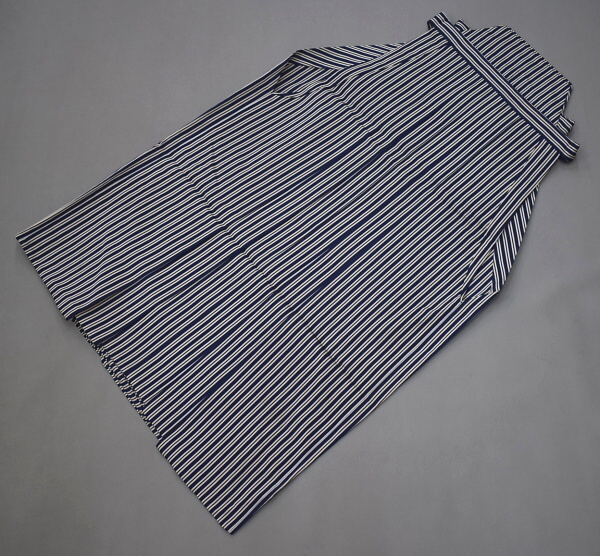 - A02-19【凛々】即決 中古品 ポリエステル 男物 袴 行灯型 紺 縞 80cm