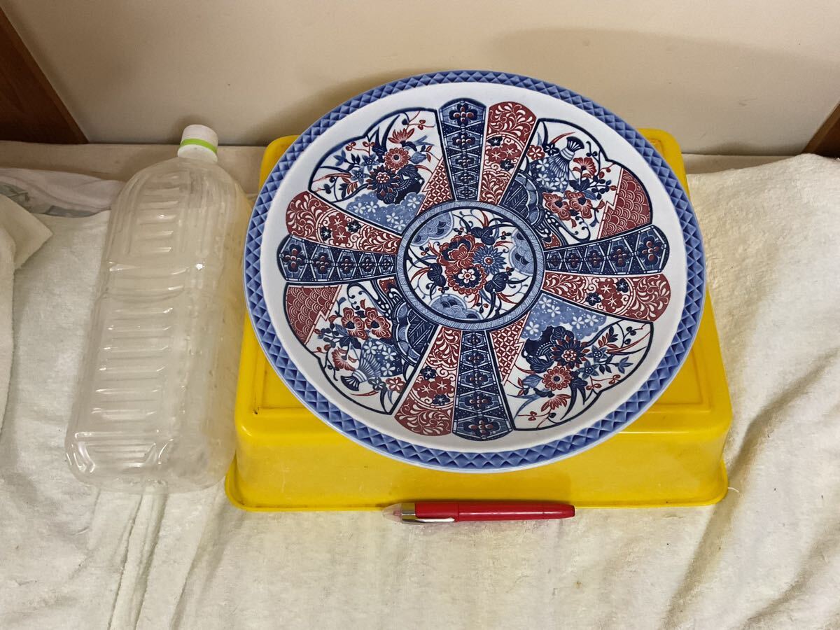 - 大皿 直径32高さ約4cm 古典柄 瀬戸物 500円超複数10%商品オマケ 裏に某社名印字(都合により社名は隠し撮影) 100