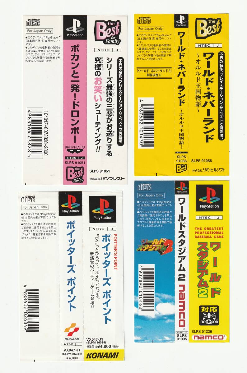 - 「プレイステーション 帯 セット №103」(ボカンと一発!ドロンボー、ワールド・ネバーランド、ポイッターズ ポイント、ワールドスタジ