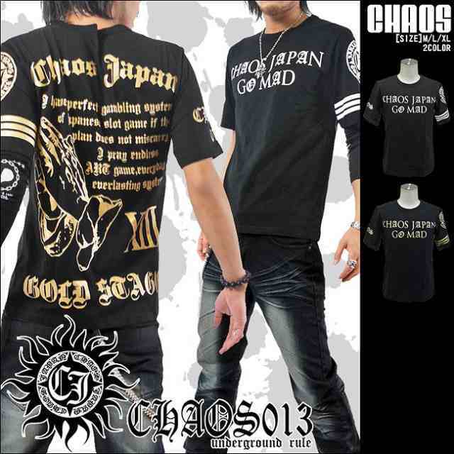 > CHAOS JAPAN GO MADプリント 腕 サイド バック 半袖Tシャツ ch-ry-2013 新品ブラック×ゴールド L