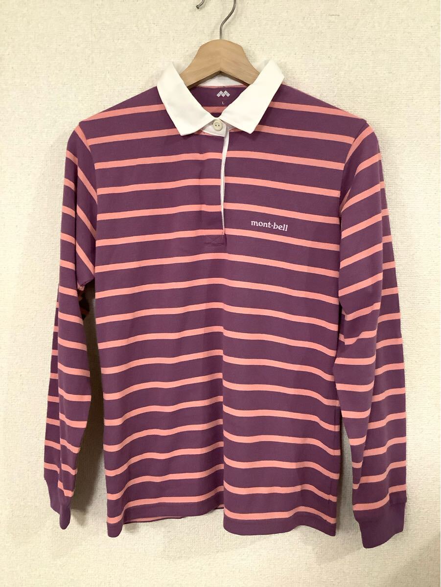 > mont-bell モンベル ボーダー柄 長袖ポロシャツ アウトドア レディース キャンプ 古着 L