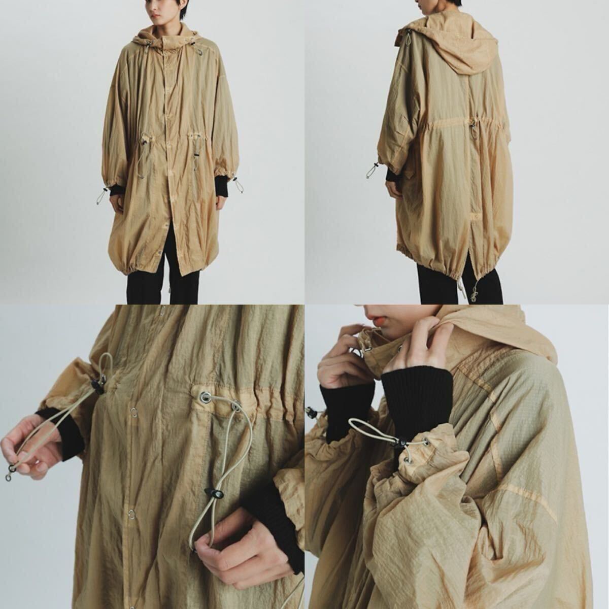 - ズッカ zucca フード ベージュ ナイロンリップ ロングコート モッズコート fudge リンネル 装苑 東京コレクション