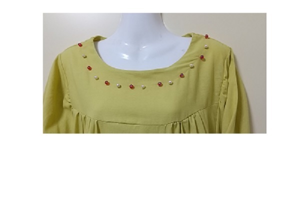 - ●新品可愛い胸元ビーズデザインMLチュニックWPフリーサイズ奇麗なイエロー系
