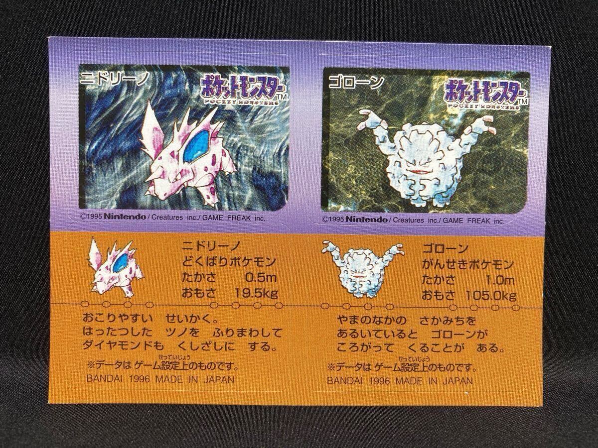 - ポケモン スナック シール ステッカー ニドリーノ ゴローン 希少 BANDAI 1996 Pokemon Snack Seal Sticker Nidorino Graveler 図鑑 クラブ