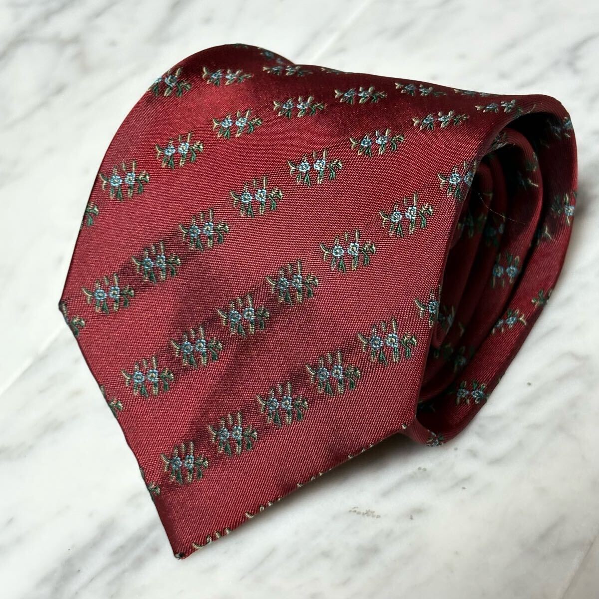 - 770円~ KENZO ネクタイ レッド ストライプ ボタニカル柄 花柄 (R3)