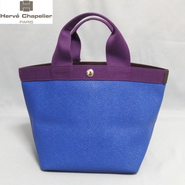 - 良品★Herve Chapelier リュクス 舟型トート M 707GP ウトラメール×ヴィオレ ハンドバッグ 青 紫 エルベシャプリエ★