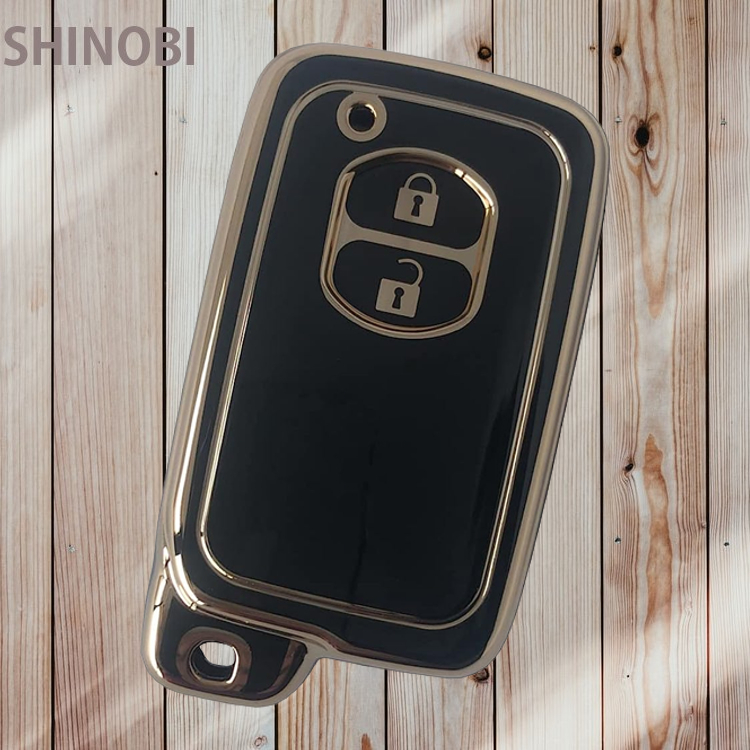 > トヨタ車専用 TPU製スマートキーケース プリウス30系・プリウスα・アクア・86・ヴィッツ・カローラ など2ボタンスマートキーカバー 金黒