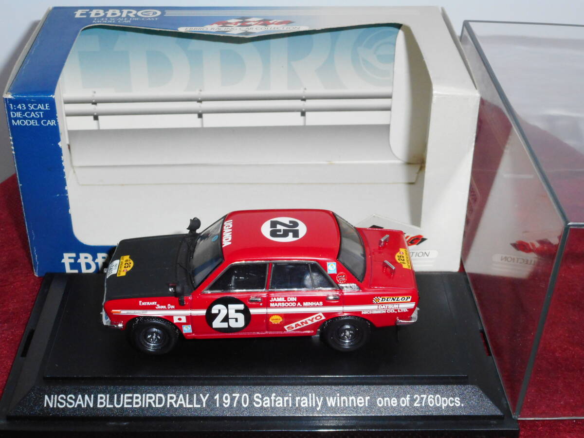 EBBRO製 1/43スケールの精密ミニカー、1970年サファリラリー優勝車「日産ブルーバード」の限定モデルです。