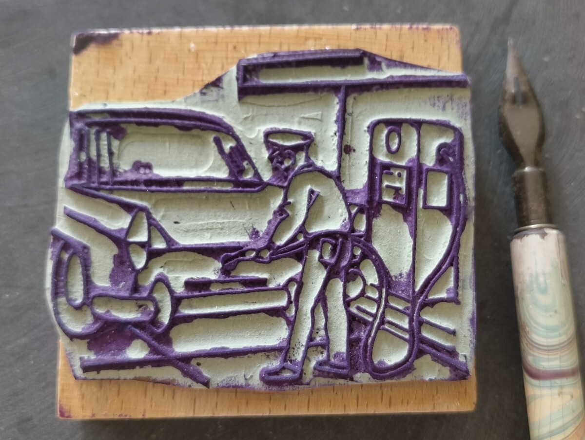 > ガソリンスタンド 軽油 自動車 作業員 スタッフ フランス アンティーク 子供 教材 スタンプ ヴィンテージ ハンコ 車 イラスト