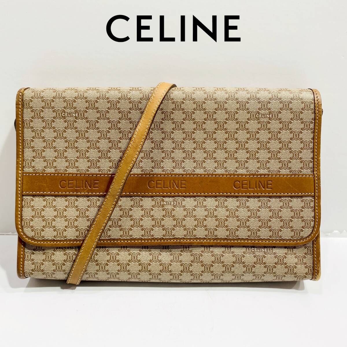 - E1EP0601/CELINE/セリーヌ/マカダム/ブラウン/2way ショルダーバッグ/クラッチバッグ/PVC×レザー/フラップ式/ビンテージ/斜め掛け
