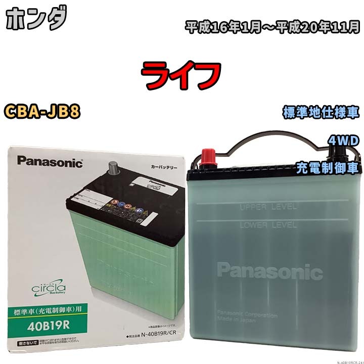 - 国産 バッテリー パナソニック circla(サークラ) ホンダ ライフ CBA-JB8 平成16年1月~平成20年11月 N-40B19RCR