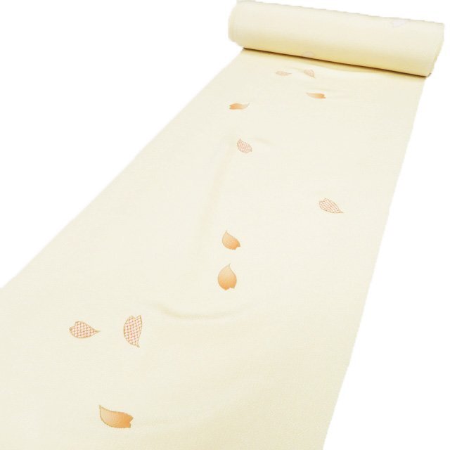 - 反物 着物 未仕立て 小紋 新古品 正絹 縮緬地 カジュアル 花びら模様 薄卵色 多色 きもの北條 A1181-2