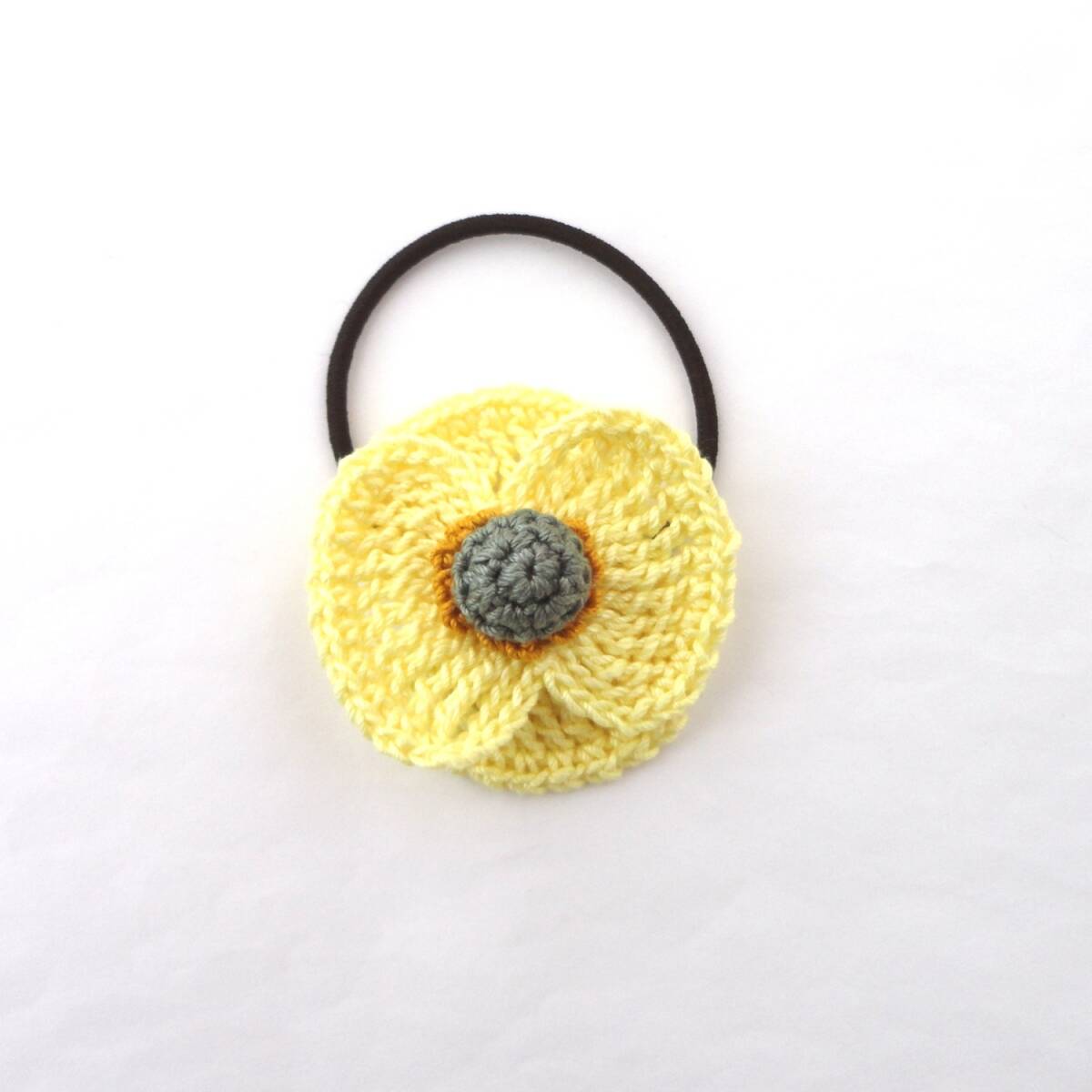 - 立体的で可愛い♪ポピーのヘアゴム*レース編み*ハンドメイド*YE*b791∴再販×3∴