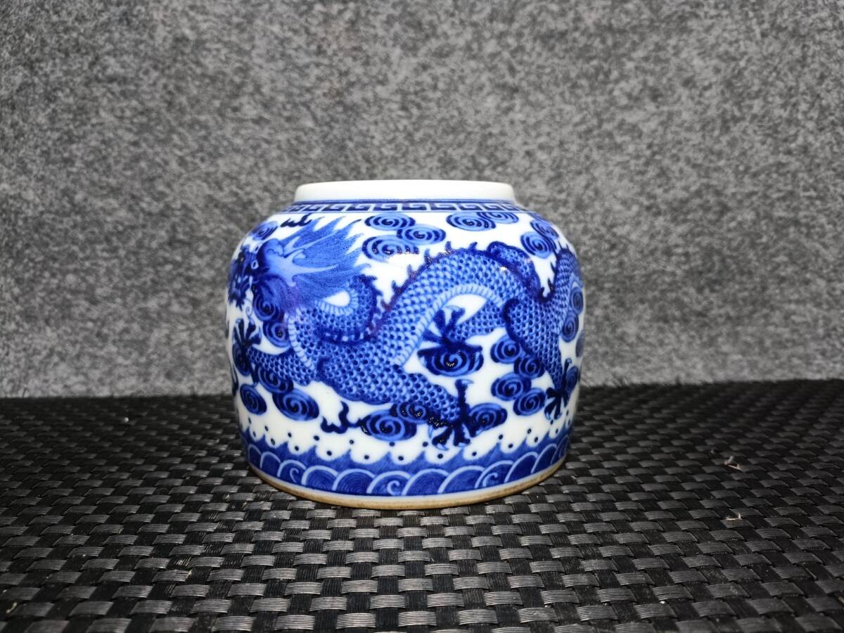 - 清 道光年製款 古陶磁器 青花 龍紋 水盂 極細工 古賞物 古美味 東洋彫刻 中国唐物 時代物 骨董 中国古美術