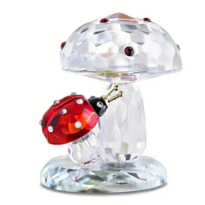 - クリスタルの可愛いてんとう虫とキノコ像アクセサリー漢字にすると天の道の虫と書く通り太陽の神様の使いを意味し幸せを呼び込む存在