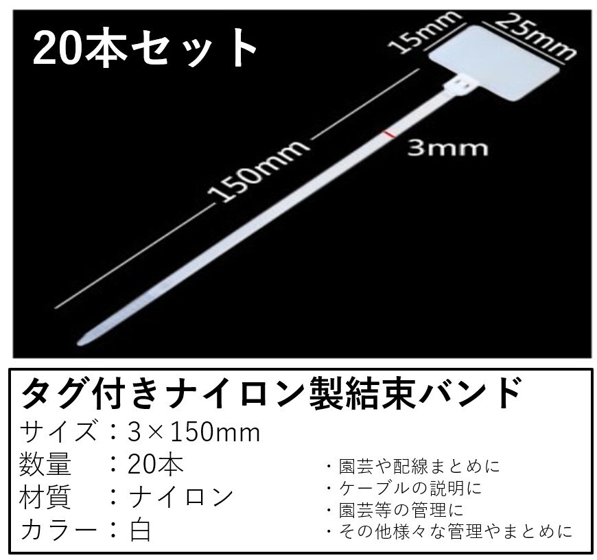 - 【普通郵便送料無料!】タグ付き結束バンド タイラップ インシュロック ナイロン製 3×150mm 20本セット
