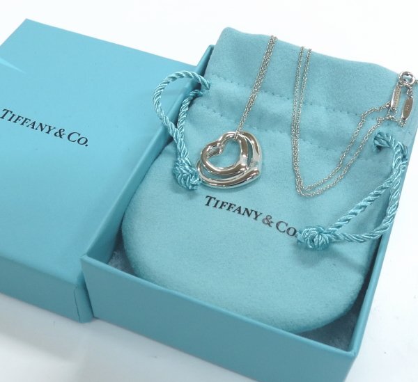 - 美品 ティファニー TIFFANY&Co. SV925 シルバー ダブル オープンハート 2個 ネックレス