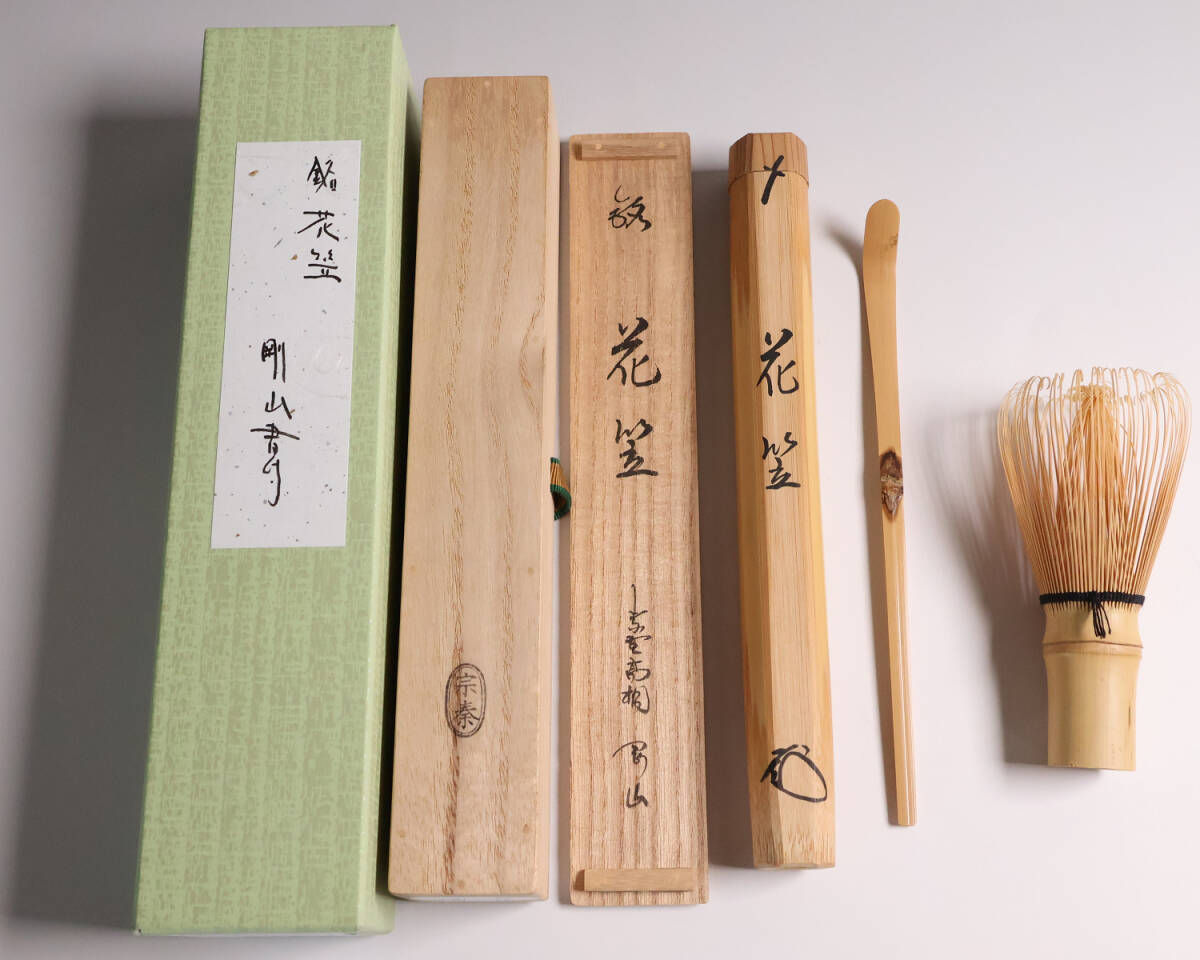 - 【CM150】茶道具 大徳寺 高桐院 松長剛山 銘「花笠」白竹 茶杓 下削・宗秦