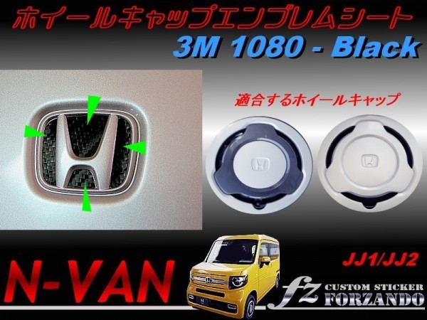 - N-VAN ホイールキャップエンブレムシート 1080カーボン ブラック 車種別カット済みステッカー専門店 fz JJ1 JJ2