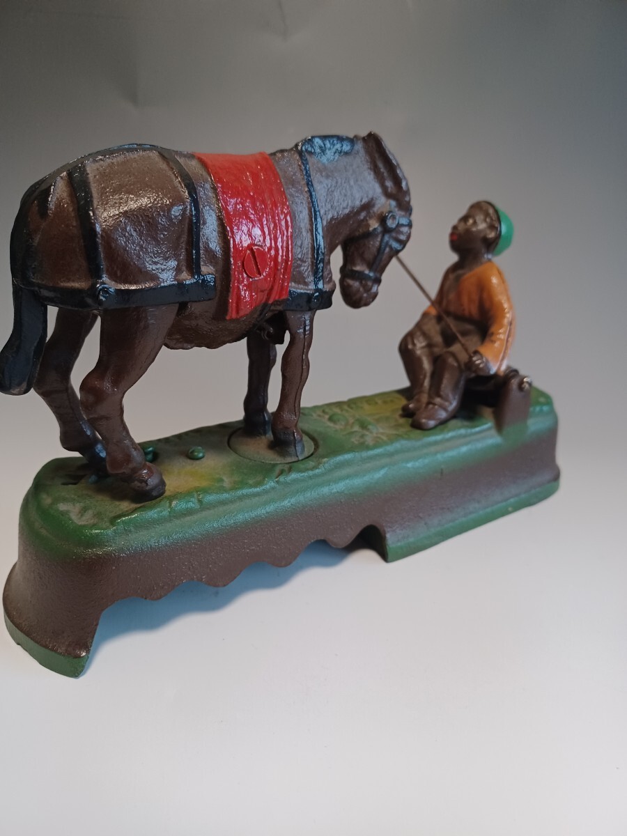 - No.7 コレクター収集品 貯金箱 スタバーンミュールホース 少年 蹴る 鋳鉄製 機械式貯金箱 希少 インテリア