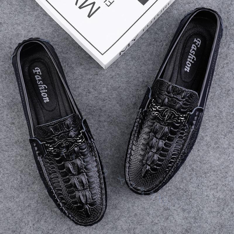- ローファー メンズ 鰐柄 牛革レザー ビジネスシューズ 本革 レザーシューズ スリッポン 革靴 紳士 24.5~27cm選択 ブラック