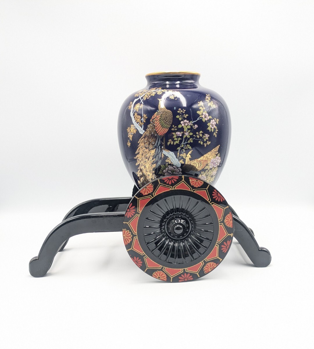 - 陶器製 御所車 花瓶 荷車付 壺 孔雀② 花器