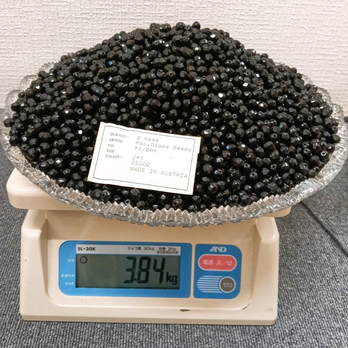> ☆未使用 大量 Glass Beads ガラスビーズ ラウンドカット 3.8キロ 8mm JET ジェット 黒 ブラック 大粒 ヴィンテージ ハンドメイド 手芸