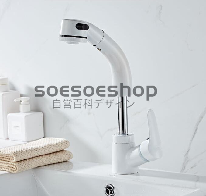- 洗面台 蛇口 混合水栓 おしゃれ 交換自分で シャワー水栓 ホース引出し式 高さ調節 洗面所 キッチン 台所 洗面ボール 水道蛇口 ホワイト