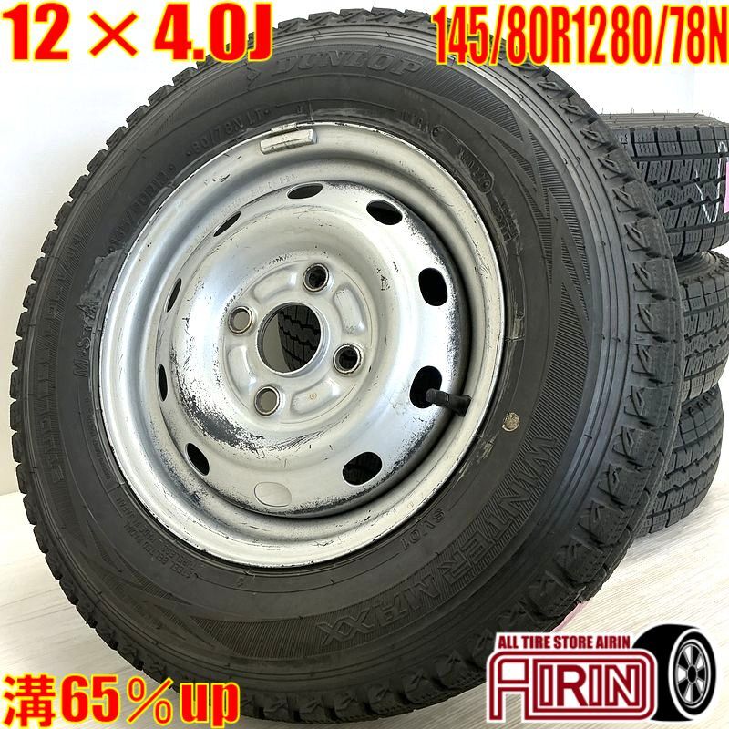| 【中古】鉄ホイール・タイヤ付 ダイハツ ハイゼット純正 DUNLOP WINTER MAXX SV01 145/80R12 80/78N 4本セット