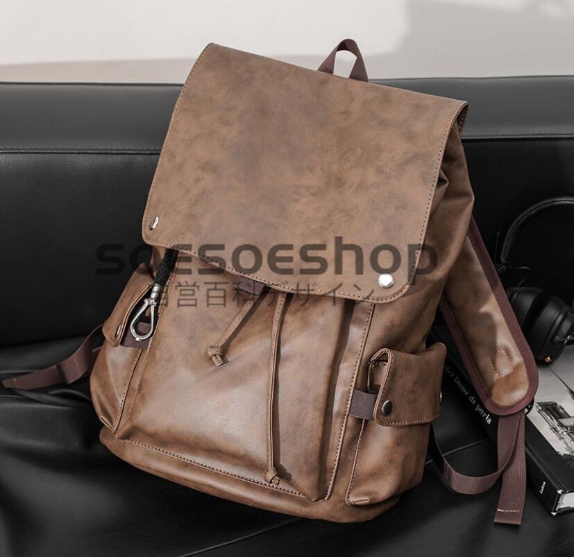 - 大容量 軽量 A4 リュックサック メンズ PUレザー デイパック 男女兼用 鞄 アウトドア 通学 通勤 旅行 学生 バックパック カーキ