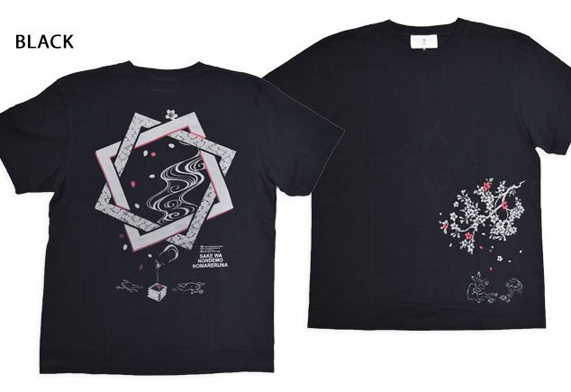 > 升酒半袖Tシャツ◆喜人 ブラック Mサイズ KJ-52004 和柄 和風 日本酒 鳥獣戯画 桜 さくら きじん