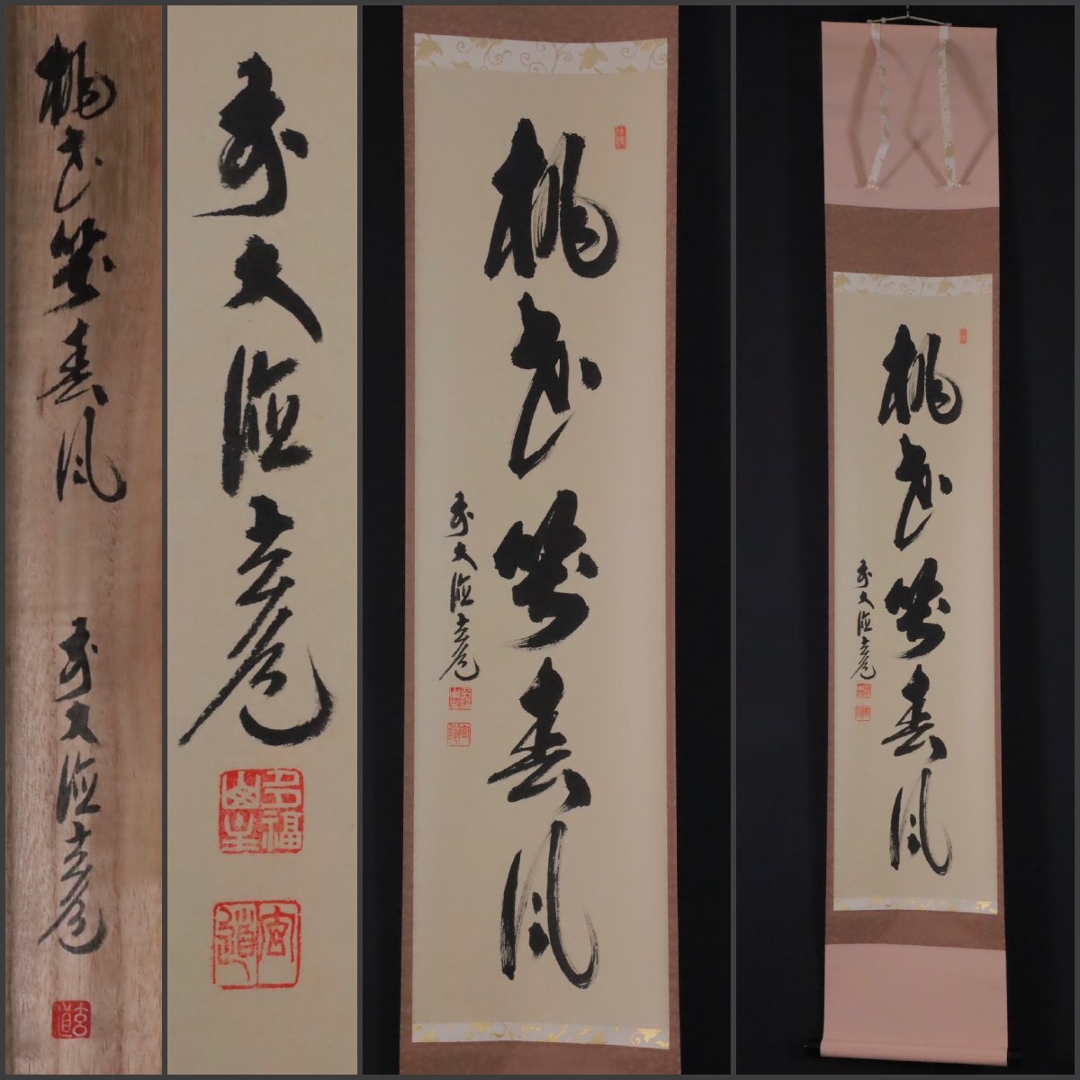 - 【模写】吉】12279 須賀玄道 書「桃花笑春風」 共箱 臨済宗 大徳寺派 瑞泉寺住職 仏教 大分県の人 茶掛け 茶道具 禅語 掛軸 掛け軸 骨董品