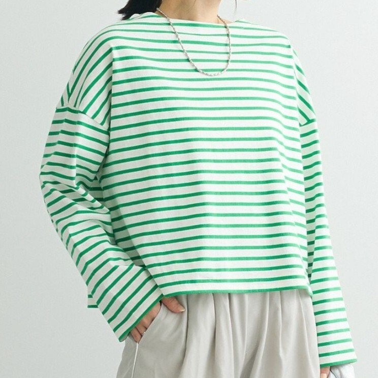 > フリーサイズ Green parks 長袖 カットソー トップス 春 夏 秋 冬 緑 グリーン ボーダー しましま グリーンパークス ファッション 洋服