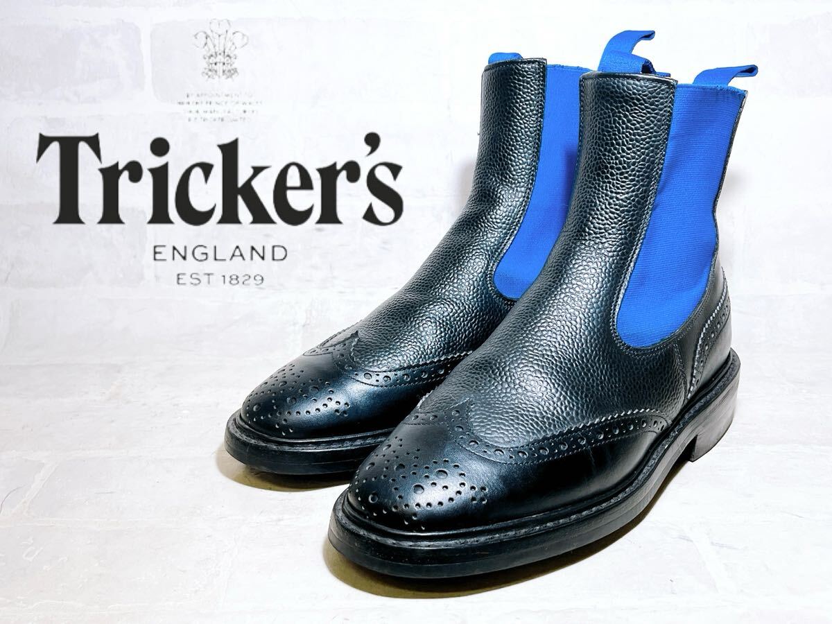 > イギリス製【極美品】Tricker's トリッカーズ 高級 サイドゴアブーツ ウィングチップ 黒 UK6-5(約24.5cm)メンズ 紳士靴