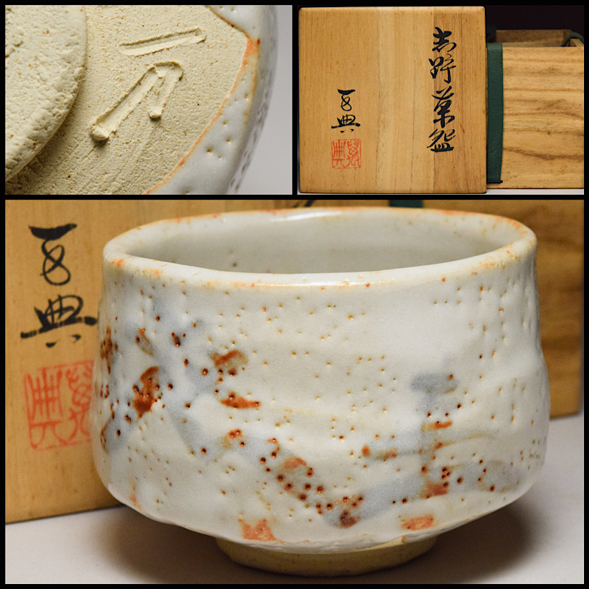 - 【八八八】戸松万典 志野 茶碗 ◆共箱 共布 栞 茶道具 抹茶碗 美濃焼 【w-272】