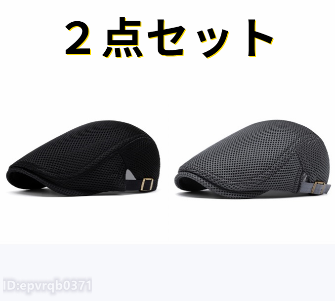 > 2点セット※ハンチング キャスケット 通気性抜群 メンズキャップ 紳士 帽子 ゴルフキャップ アウトドア フリーサイズ 黒/グレー